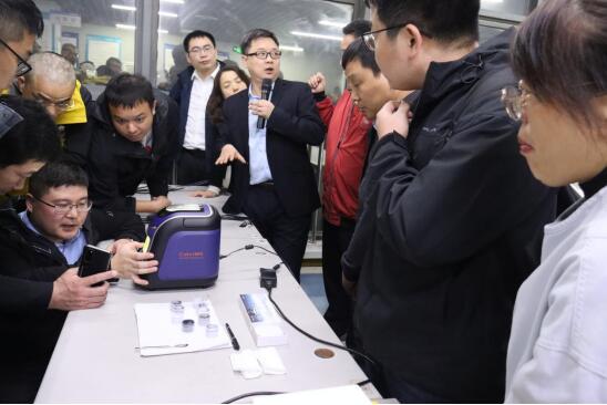 随后,考查团一行移步大公司三楼Cube100S产物出产线。针对炭黑行业的关头检测需要,天瑞手艺专家在现场对Cube100S能量色散X荧光光谱仪、EDX3300SPLUS 侧照式单波长X荧光光谱仪两款仪器停止了专场讲授与实机演示,仪器表现出的高精度与高不变性,给专家率领们留下了深切印象。他们不断立足,就仪器的检测道理、手艺参数与天瑞工程师停止深切交换。