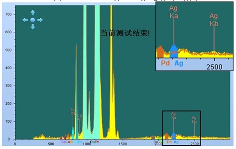 拔取某品牌产地期货饰物,应用EDX 3000PLUS器材,对其停下试验。之下图2右图,为器材试验点,可将土样需试验点挪动到十字光标中停下试验。