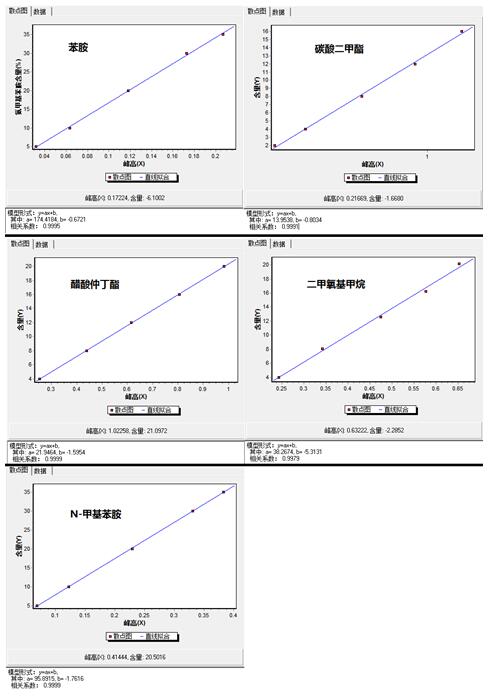 2.2.2 校准用的规范物资:苯胺、N-甲基苯胺、二甲氧基甲烷、乙酸仲丁酯、碳酸二甲酯均为阐发纯或阐发纯以上级别试剂(中国煤油迷信研讨院供给)。