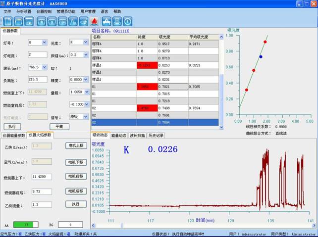 原辅料检查:于原子团发送光谱图仪光的波长766.5nm处,运用良好氛围-乙炔火花,以水调零,仗量试液的吸光度,减去伴同试料的空白来尝试水溶液的吸光度,从钓鱼任务曲线上代理得知反映的钾密度。