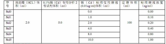 使用镉(Cd)技术规范使用氢氧化钠溶液(0.01ug/ml),优级纯稀盐酸(HCL) ,0.1%镉(Cd)通用阐发 2 号微生物培养基,去阳离子水(电容率≥10M欧姆)等微生物培养基。