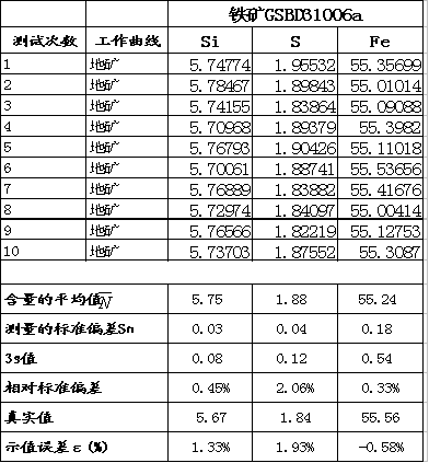 之下利用EDX 3600B型对铁国家行业标准样GSBD31006a现实主义者自测的所得的的谱图,的任务线性等相干数据信息: