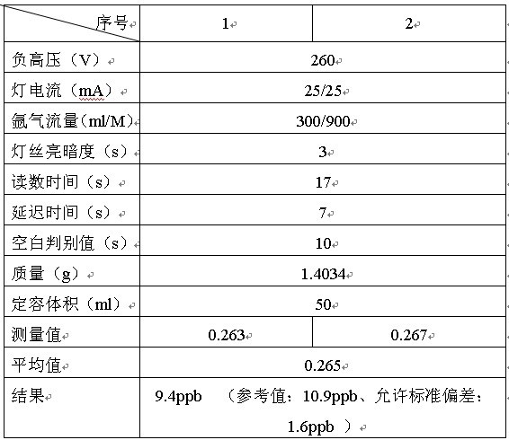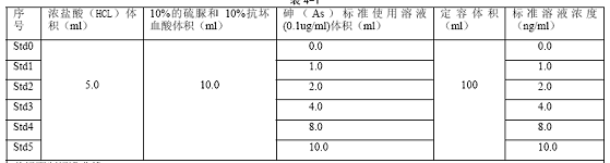从试样中称取0.20g布置于窗户玻璃烧小杯,参与8ml HCl,5mlHF, 8ml HNO3。加温消解。降温后定容于100ml余量瓶中,参与5mlHCl,5%的硫尿和抗坏血酸稀硫酸20ml。(此外做试样缺员)。