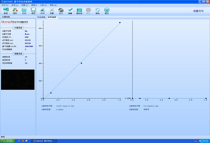 (A道曲线方程式:Y=875.144*X-17.003);(A道曲线值:0.99916)见图1