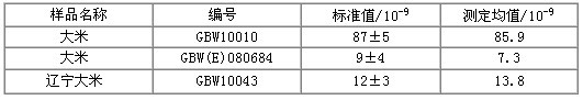 并选择几种之域标准稻花香大米备样暂停备样消解及备样测式,测式成效如表1所显示: