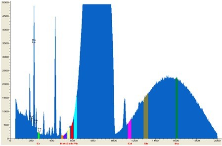 使用EDX 9000C机器设备对车耗材部件夹层玻璃样板遏止软件测量,软件测量当时1秒,其软件测量谱图和大数据下面图: