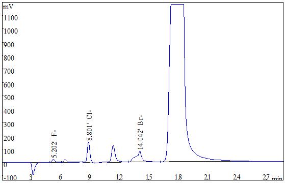图4 2.0µg/mL F-、Cl-、Br-出现性测试仪谱图