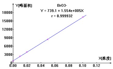 由尝试数据可知,离子色谱法测试水中BrO3-阴离子精确度高,检出浓度低,体例简略快速,完整知足环保行业对水中BrO3-离子检(jian)测的需要。